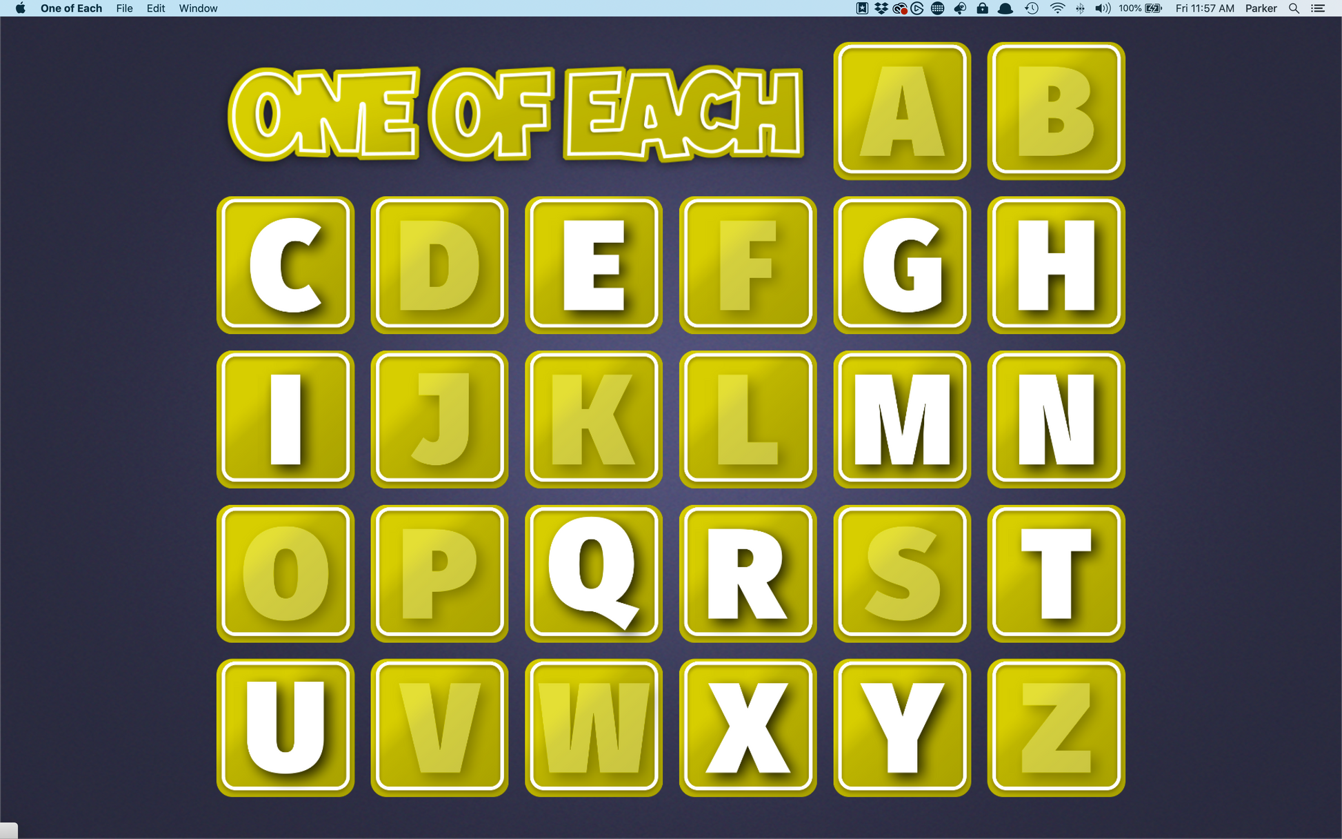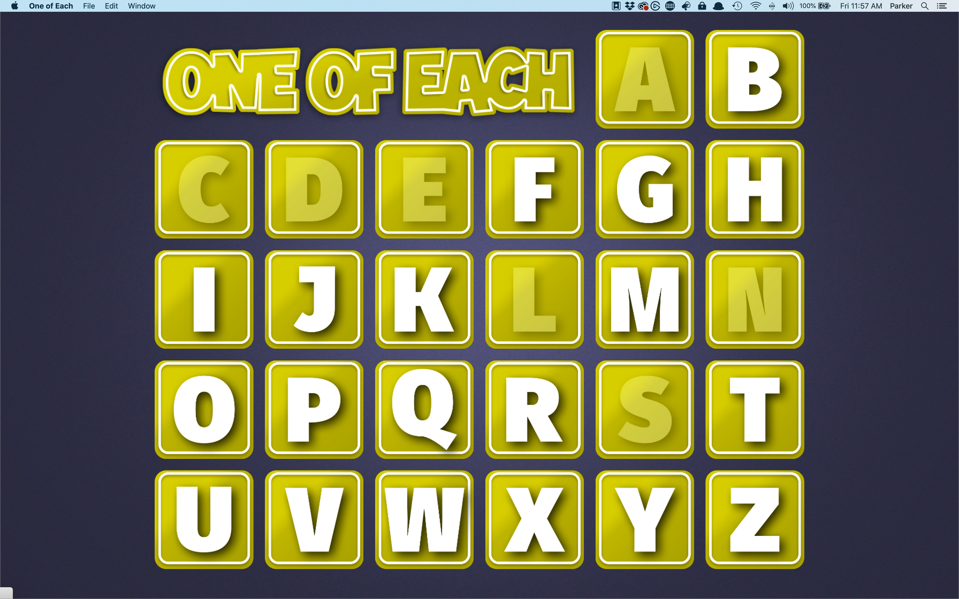 Students take turns calling out items in a given category without repeating the same first letter. Each time an item is called out, you just enter its first letter on your keyboard and it’s taken off the board. If that letter is entered again, you’ll hear a buzz and that student is out!